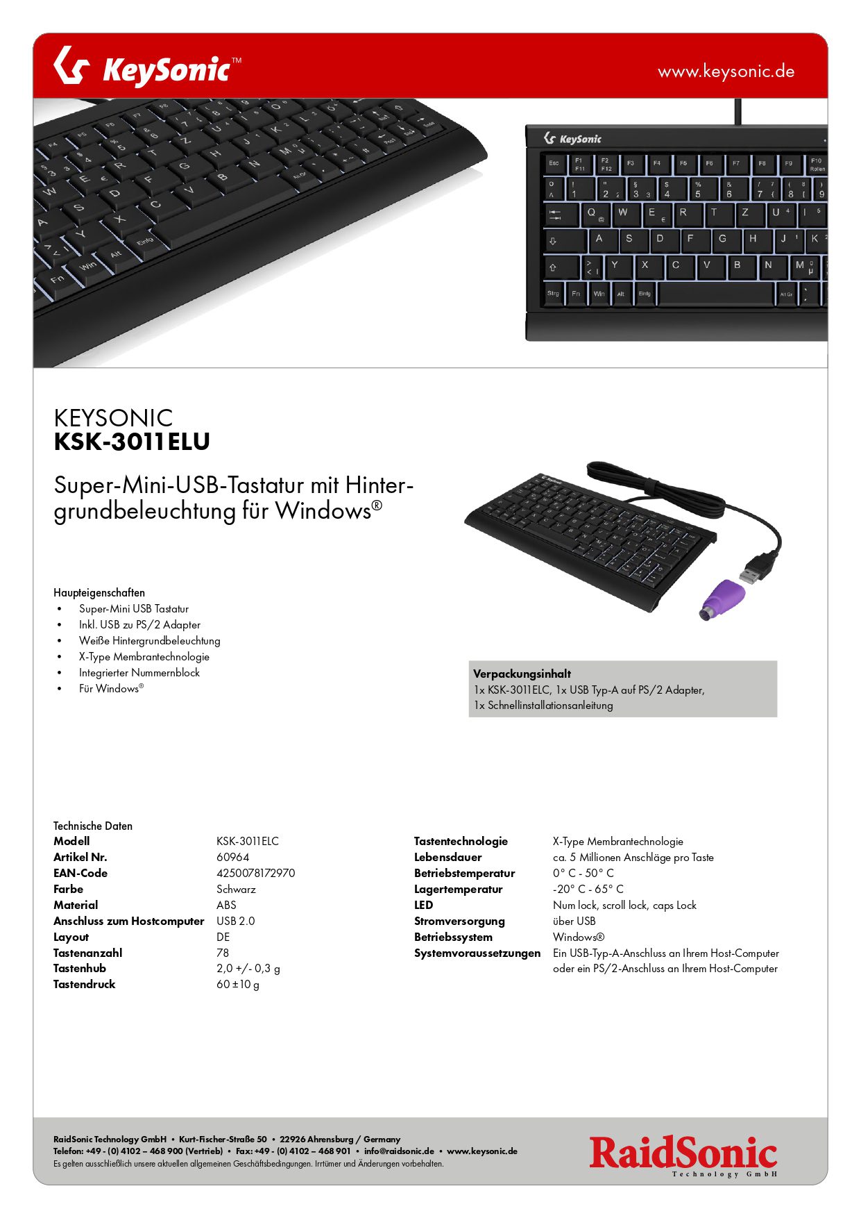 Die Keysonic KSK-3011ELU ist eine kompakte Tastatur mit ausgewogener Hintergrundbeleuchtung, X-Type-Membrantechnologie und integriertem Nummernblock. Ideal für Schriftsteller, Gamer und Fachleute.