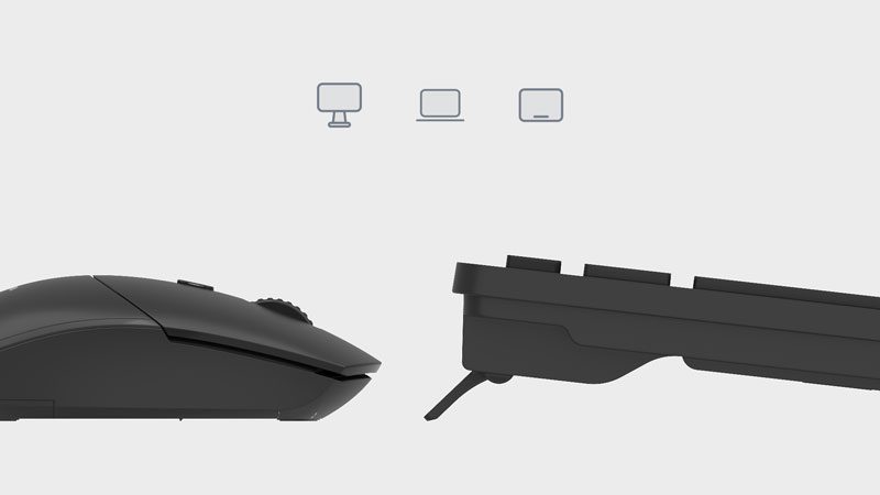 Create your workspace with the KSKM-8201M-BT Bluetooth® Keyboard & Mouse Set. The powerful duo offers triple-channel Bluetooth® connectivity for easy device switching. The keyboard's adjustable feet ensure an optimal typing posture, complementing the mouse's customisable DPI for unmatched precision. Its modern design elevates your desk with a touch of class. Enjoy the perfect blend of style, comfort, and advanced technology for an exceptional wireless working experience.
